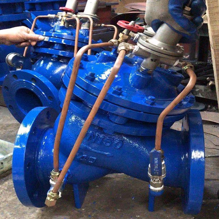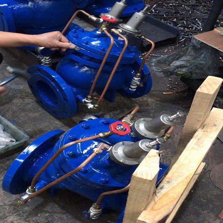 水击泄放阀的工作原理:通过液压管的压力传递,主阀芯(盘)仿效导阀的效用。只要上游压力小于导阀的设定值,先导阀关闭,上游压力功用在隔膜上,以维持主阀关闭。一旦上游压力上升到先导阀的设定压力以上,先导阀将敞开以获释隔膜和主阀上方的压力水将敞开。在缓慢而稳定地关闭之前,将获释大量的水并将压力下降至设定值,而不会产生二次水。锤子@@@时,主阀安装在排水旁通管中;当压力阀当做压力维持阀时,主阀串联安装在管道中。安装方式是用阀盖朝上。