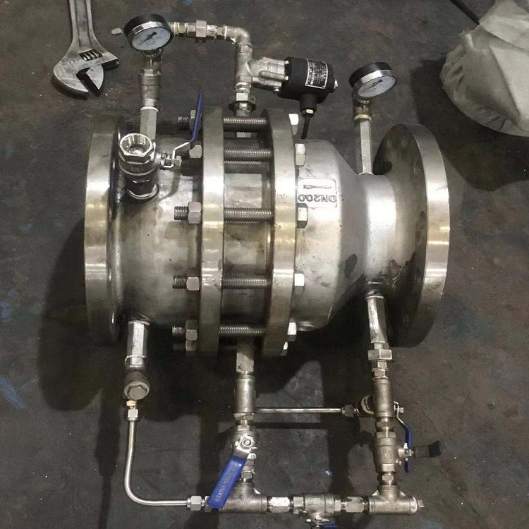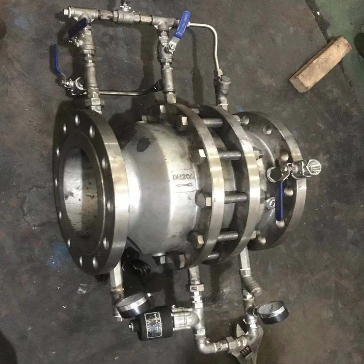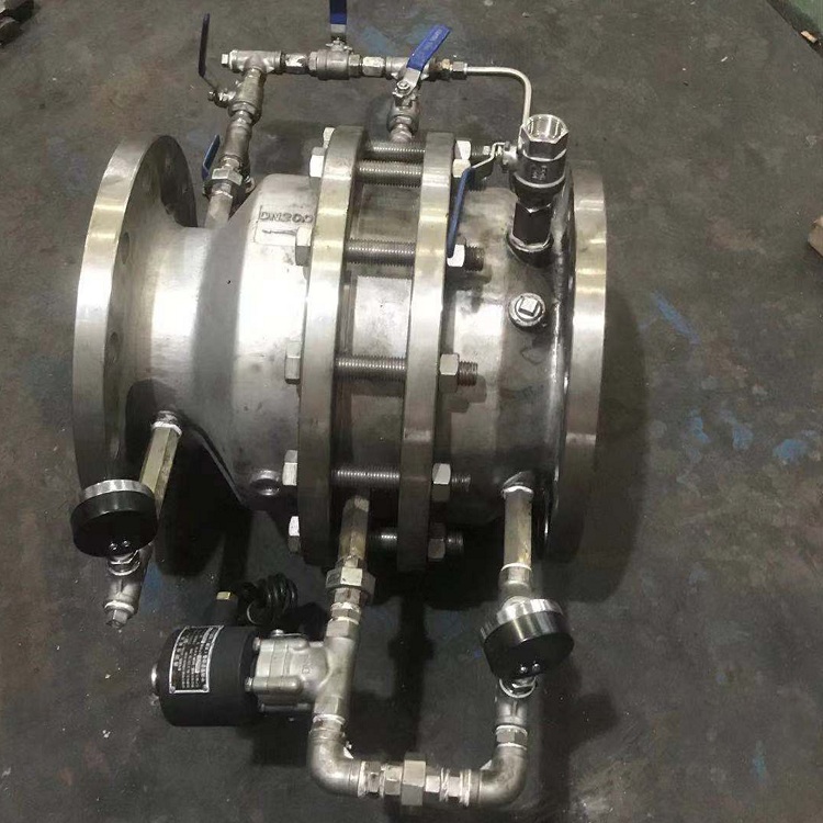 雨淋阀的阀腔分成上腔,下腔和控制腔三部分,控制腔与供水管道相接,中间设限流孔板,压力水进入供水管道促进控制室的整个隔膜,然后促进驱动杆压向阀盘锁紧杆,锁紧杆产生扭矩将阀板锁定在阀座上。在消防过程中,由于控制室的压力释放,效用在阀瓣锁杆上的驱动杆的扭矩小于效用在阀上的供水压力的扭矩阀瓣打开,供水进入配水管道。